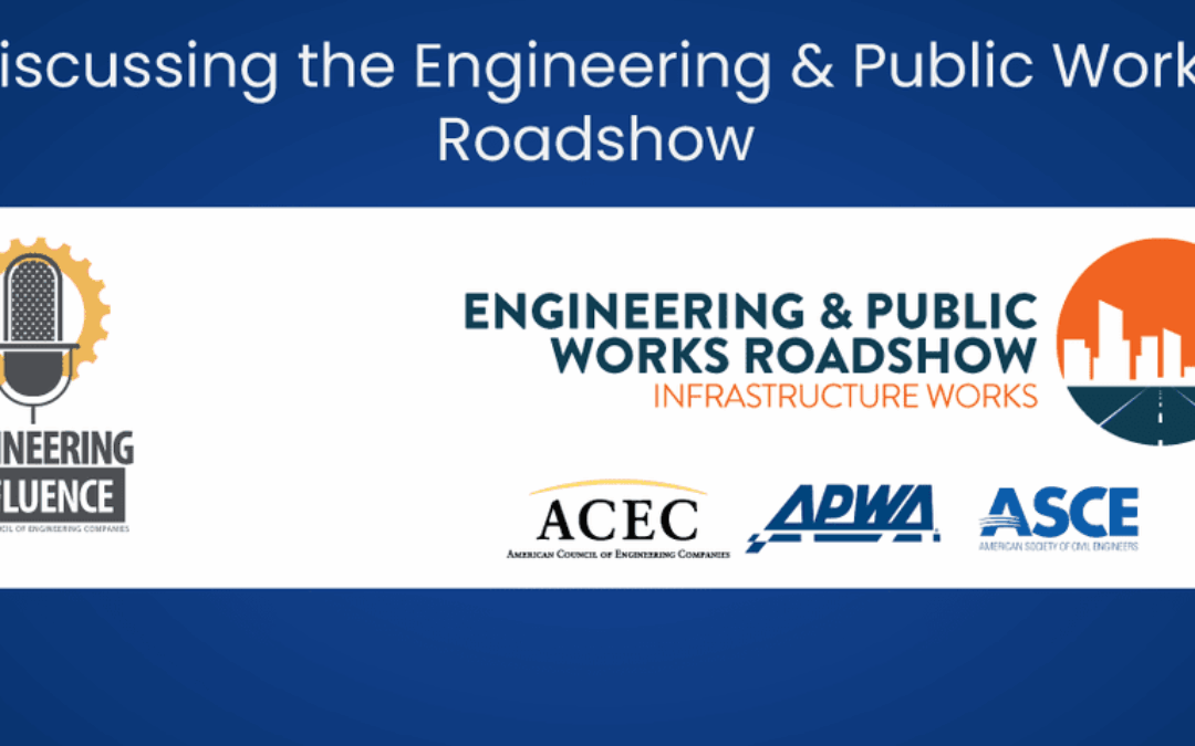 ACEC has joined the American Public Works Association and the American Society of Civil Engineers on a nationwide Engineering and Public Works Roadshow to demonstrate the essential value of engineering by spotlighting successful examples of design. In this episode of the Engineering Influence podcast, the three leaders of these organizations discuss how the Roadshow came about, its goals, its first event, and what is to come in 2023.