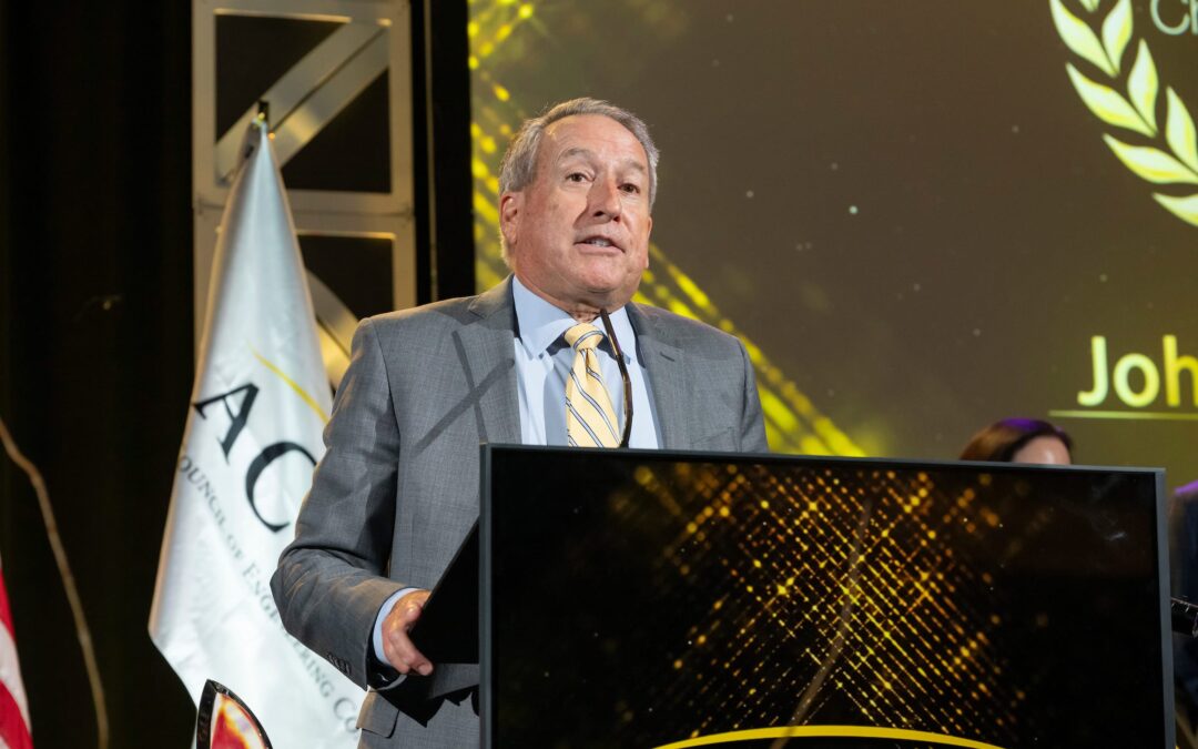 During the 2023 Fall Conference awards ceremony, ACEC recognized John Carrato, Benesch’s former CEO and the immediate past chair of the ACEC Research Insitute, with the prestigious Chair Emeritus Award. The award is one of the highest honors the Council bestows and recognizes an individual’s contributions to the Council and the engineering profession.