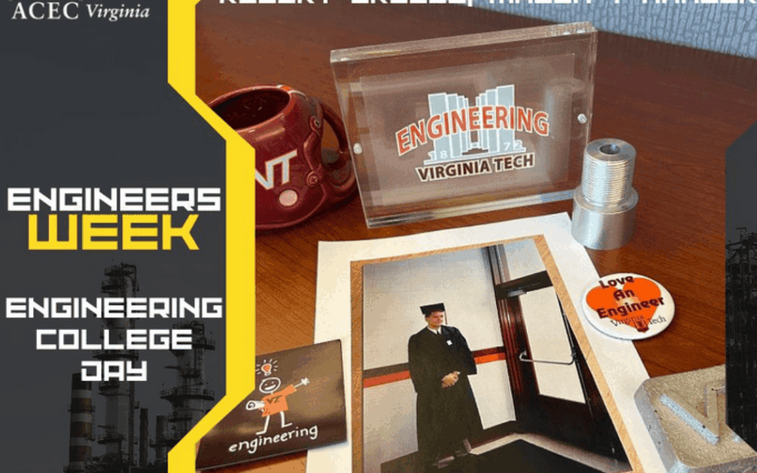 ACEC Virginia visited member firms to show appreciation for their work and spotlighted college engineering during E-Week. Dunbar employees showed their engineering pride and rocked their collegiate gear for Engineering College Spirit Day, celebrating the schools that shaped their careers. Robert V. Grubbs with Mason & Hanger represented Virginia Tech in the Member Organization’s College Engineering Spotlight. His passion for engineering started in the classroom and has grown into a career shaping the built environment.