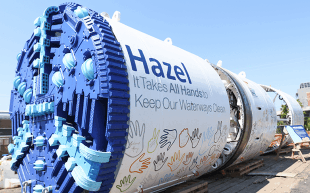 A new 380-ton, 14 feet 8 inches tall tunnel boring machine (TBM) named Hazel has been unveiled by AlexRenew, Alexandria’s wastewater authority, marking a significant milestone in its RiverRenew program to improve local waterways.