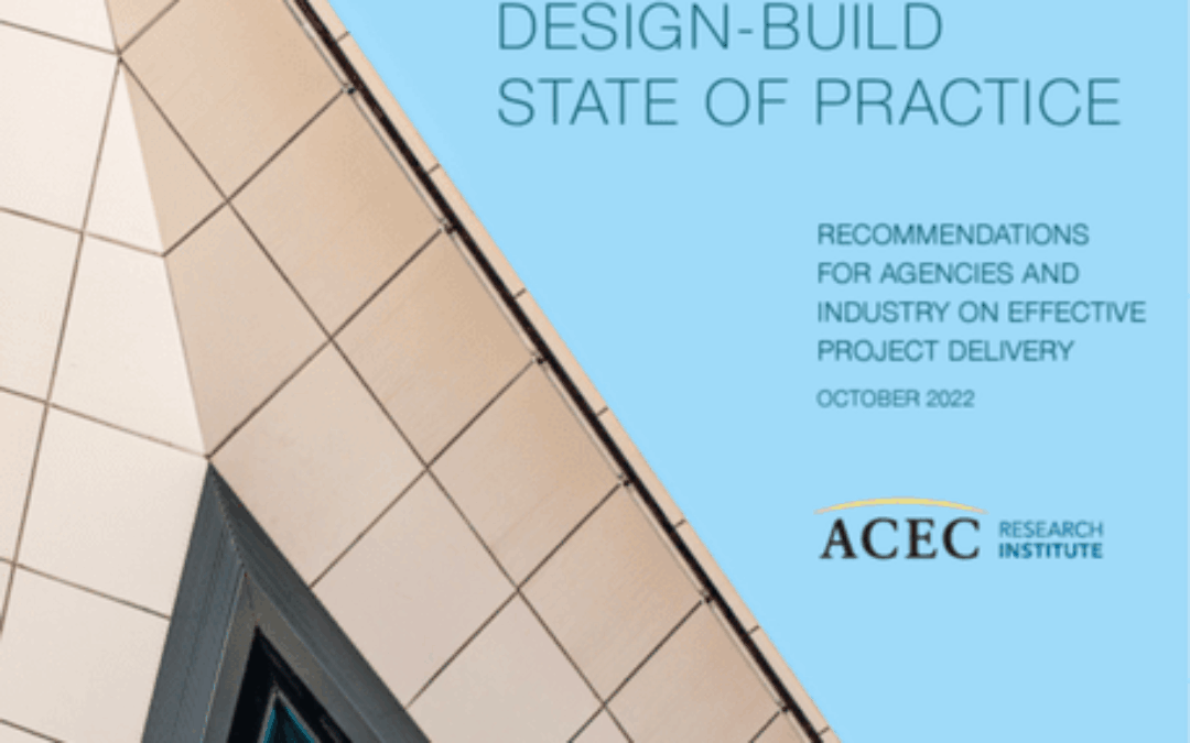 The ACEC Research Institute today released a new study with the University of Colorado Boulder that examines the benefits and challenges both the project owners and firms face when applying the design-build (DB) delivery system.