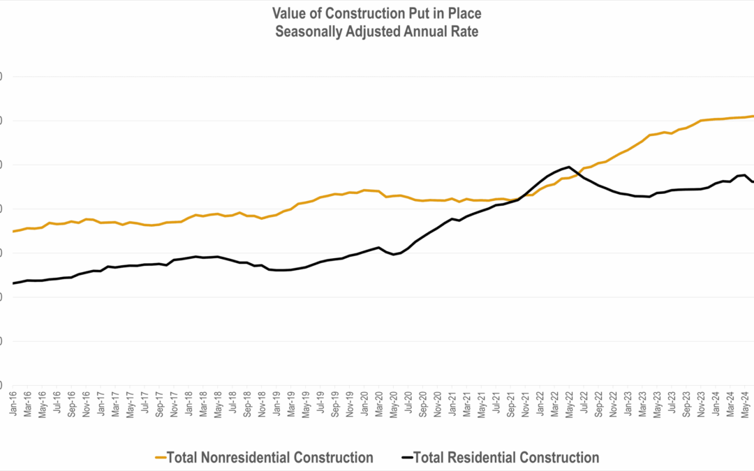 Recently, the US Census released the results of its monthly Value of Construction Put in Place Survey. The survey provides estimates of the total dollar value of construction work done in the U.S. This data includes design and construction spending for public and private projects.