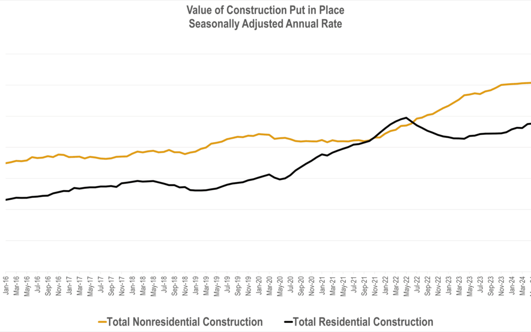 Private construction saw an increase of 0.1% month over month while Public construction saw a slight decline of -0.1%. A bright spot has been the resilience of the Residential market, which grew 0.1% month over month while interest rates continue to remain near 30 year highs over the past 18 months.