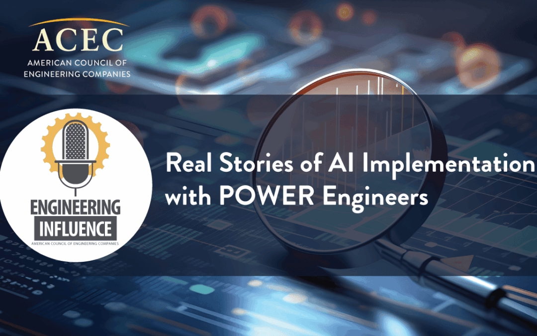ACEC is working with Power Engineers on a series of podcasts focused on emerging technologies that are rapidly changing how engineering firms operate, from how they structure marketing and business development efforts to how they deliver work products to clients. We have produced three podcasts covering the development of Artificial Intelligence, how firms can incorporate it into their businesses, and how Power Engineers has leveraged AI to create its very own proprietary tool. We will soon extend beyond AI to cover topics such as how firms can best structure their internal hierarchy to create C-level positions for data security, management, and strategy, and an exploration into the engineering firm of the future.