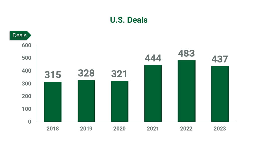 Sharp interest rate hikes and widespread predictions of a recession caused a slight decrease in A/E and environmental industry M&A activity in 2023. Still, the 437 deals tracked by Morrissey Goodale last year marked the third-highest count on record, trailing only the all-time high of 483 deals in 2022 and 444 transactions in 2021.
