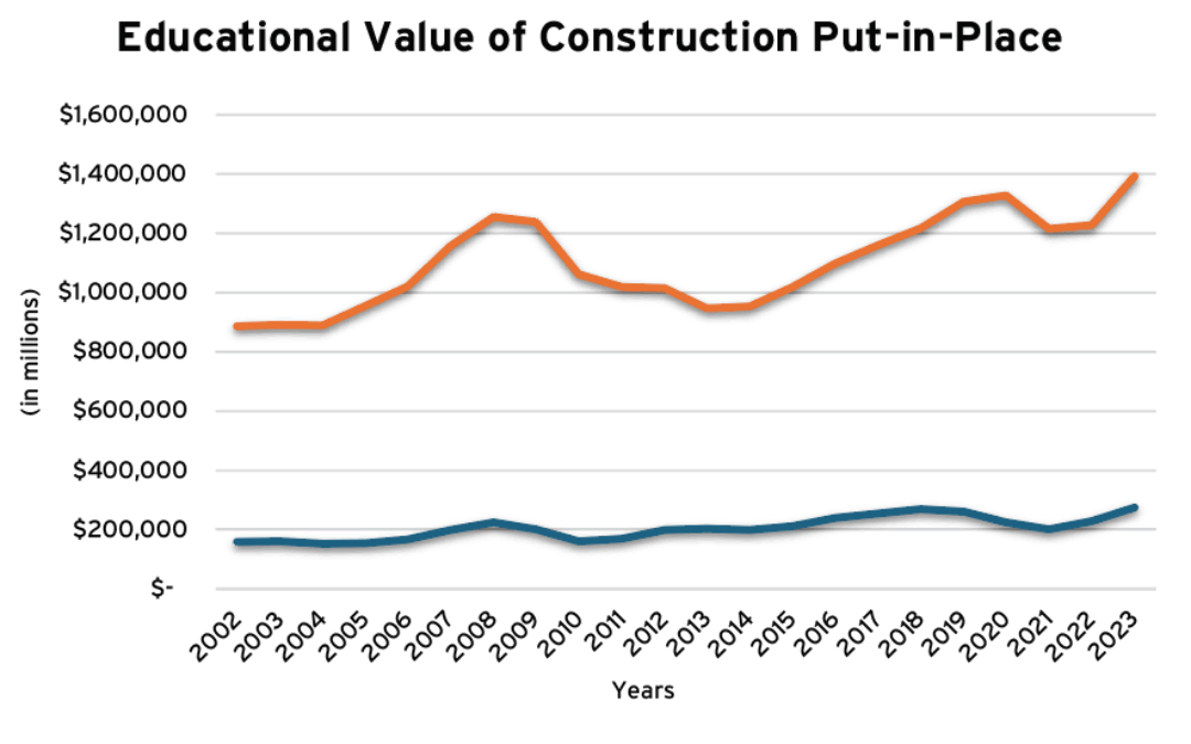 This increase in investment can be attributed to aging infrastructure in schools and campus housing, renovation investments, Inflation Reduction Act funding, modernizing networks, artificial intelligence, and local bond measures.